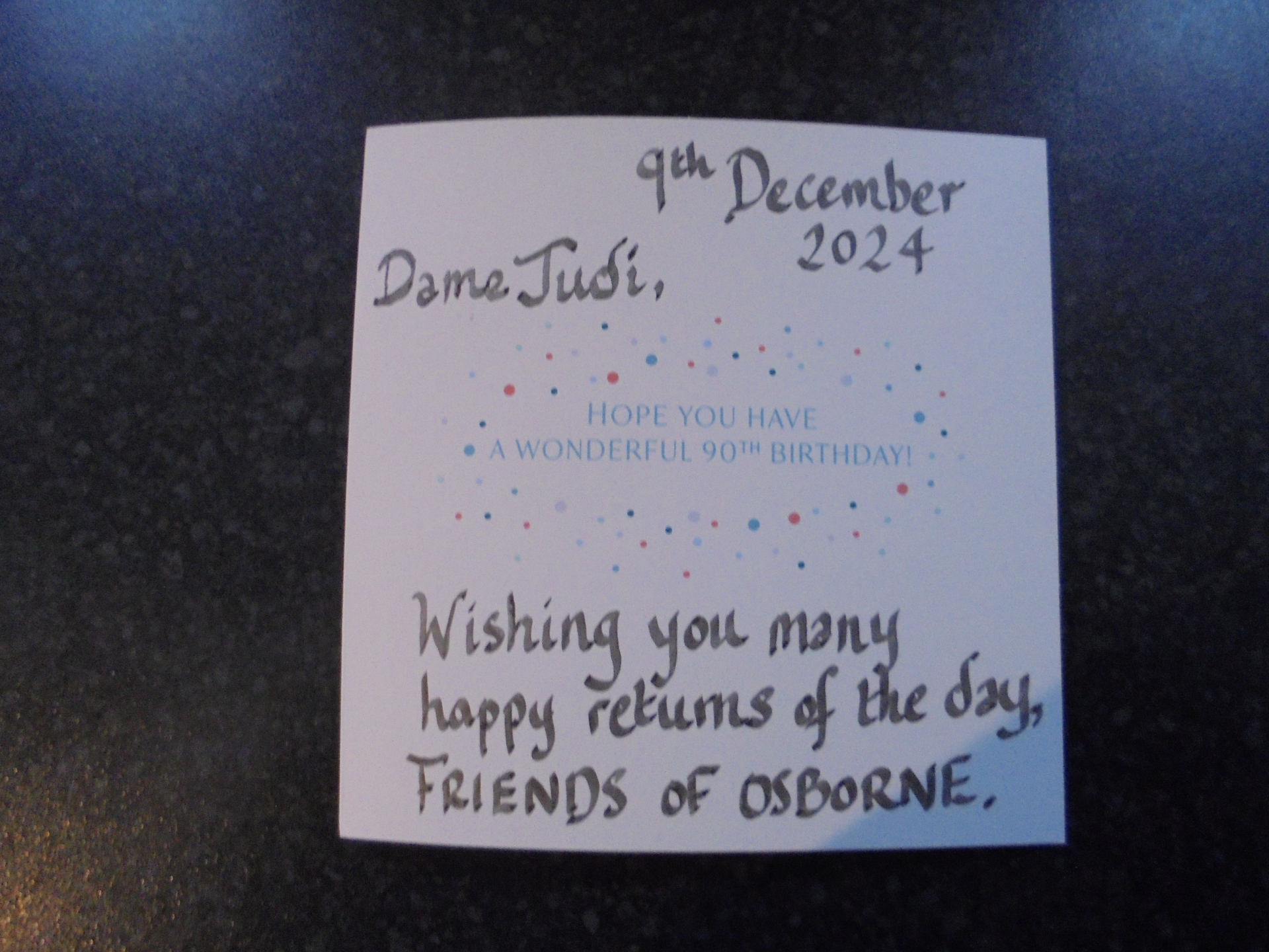 Friends of Osborne were pleased to celebrate our Patrons 90th birthday with the attached card.